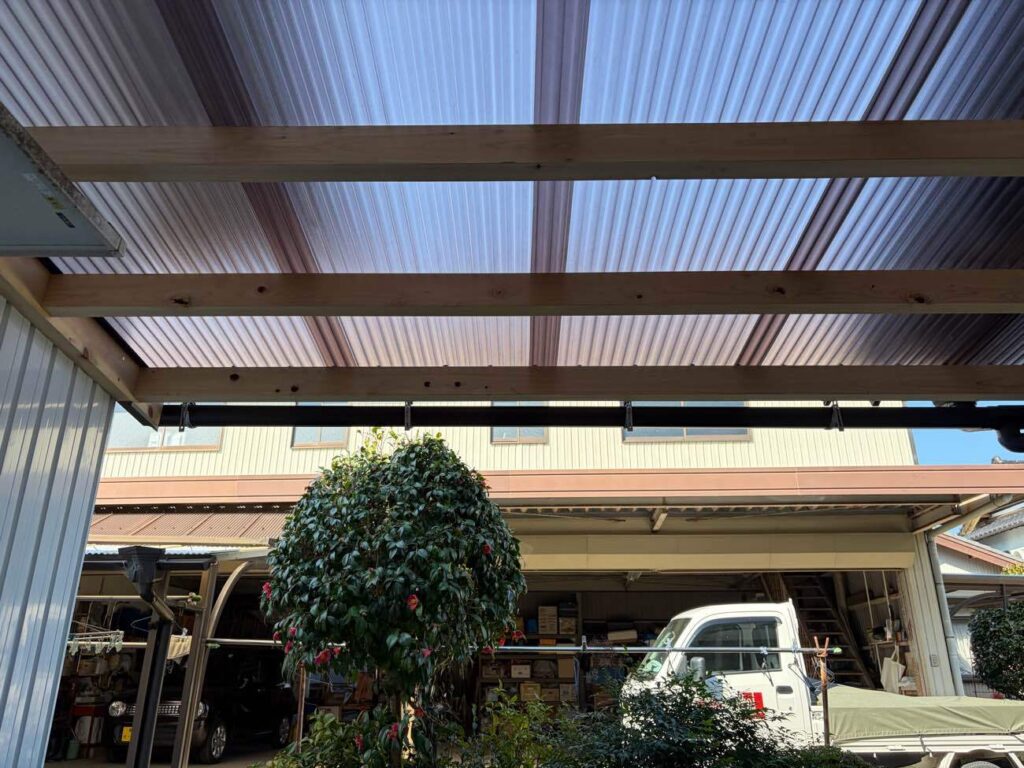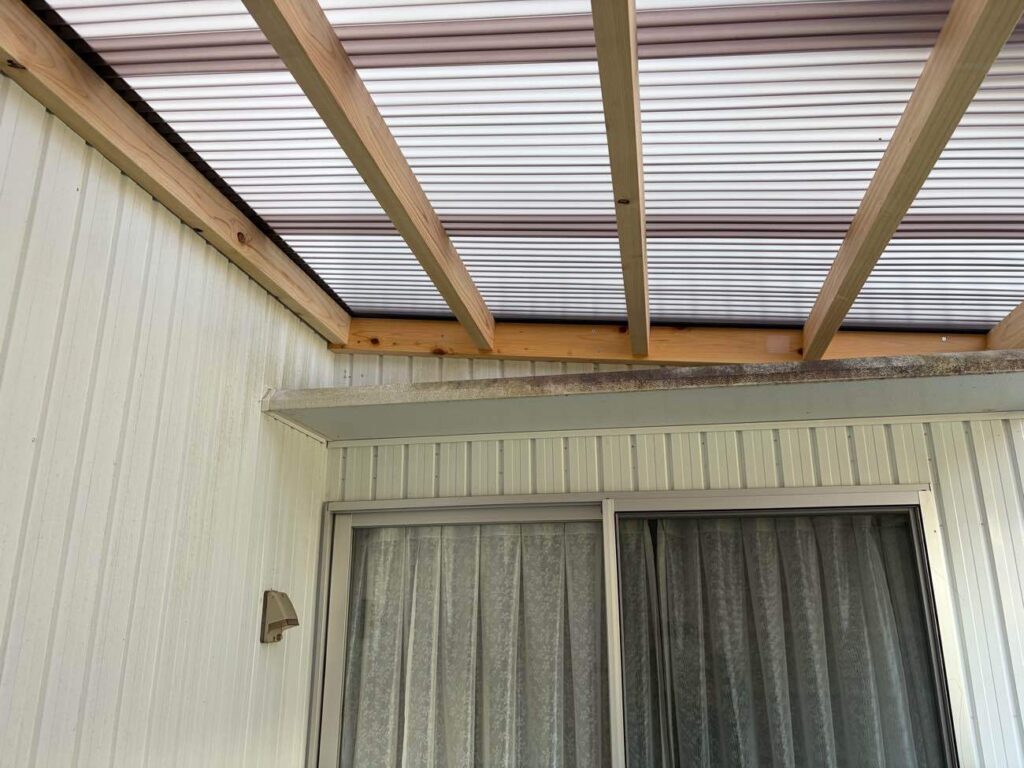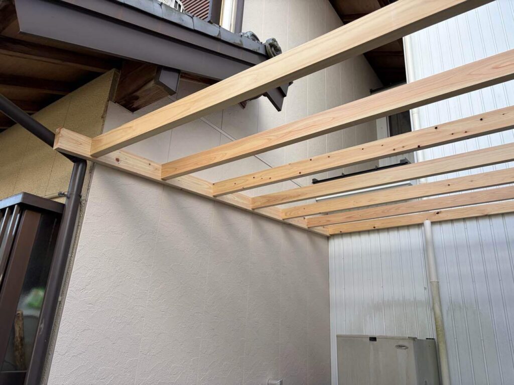 物を置くスペースとして使用したいとのご要望があり、雨に濡れないようテラス屋根の設置をご依頼いただきました。
